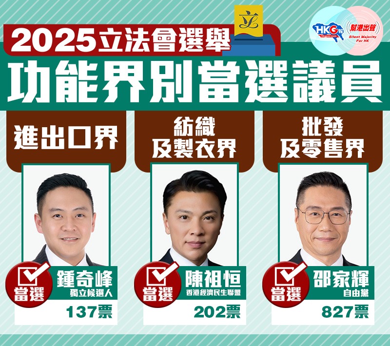 【2025立法會選舉】功能界別當選議員(進出口界、紡織及製衣界、批發及零售界)