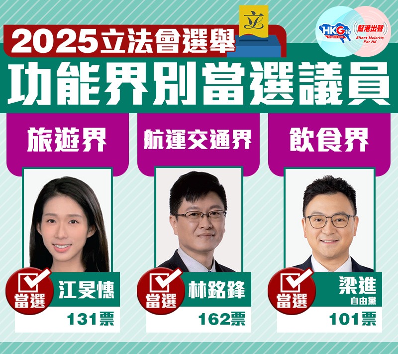 【2025立法會選舉】功能界別當選議員(旅遊界、航運交通界、飲食界)