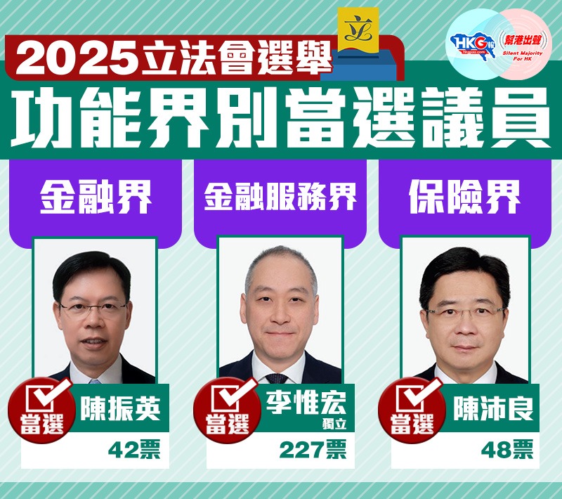 【2025立法會選舉】功能界別當選議員(金融界、金融服務界、飲食界)