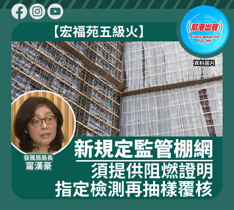 【宏福苑五級火】新規定監管棚網 須提供阻燃證明 指定檢測再抽樣覆核