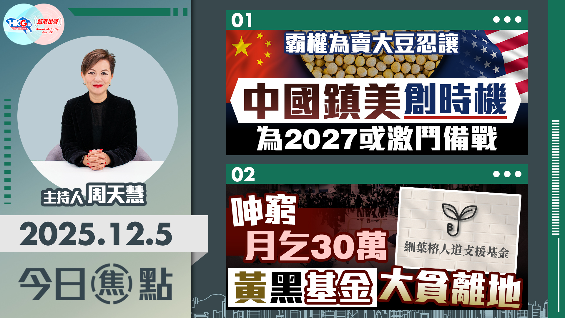 【HKG報與幫港出聲聯合製作‧今日焦點】霸權為賣大豆忍讓 中國鎮美創時機 為2027或激鬥備戰 呻窮月乞30萬 黃黑基金大貪離地