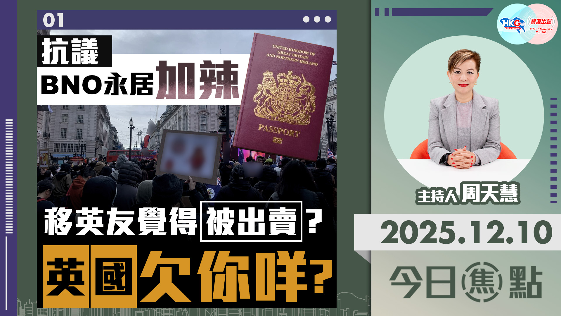 【HKG報與幫港出聲聯合製作‧今日焦點】抗議BNO永居加辣 移英友覺得被出賣?英國欠你咩?