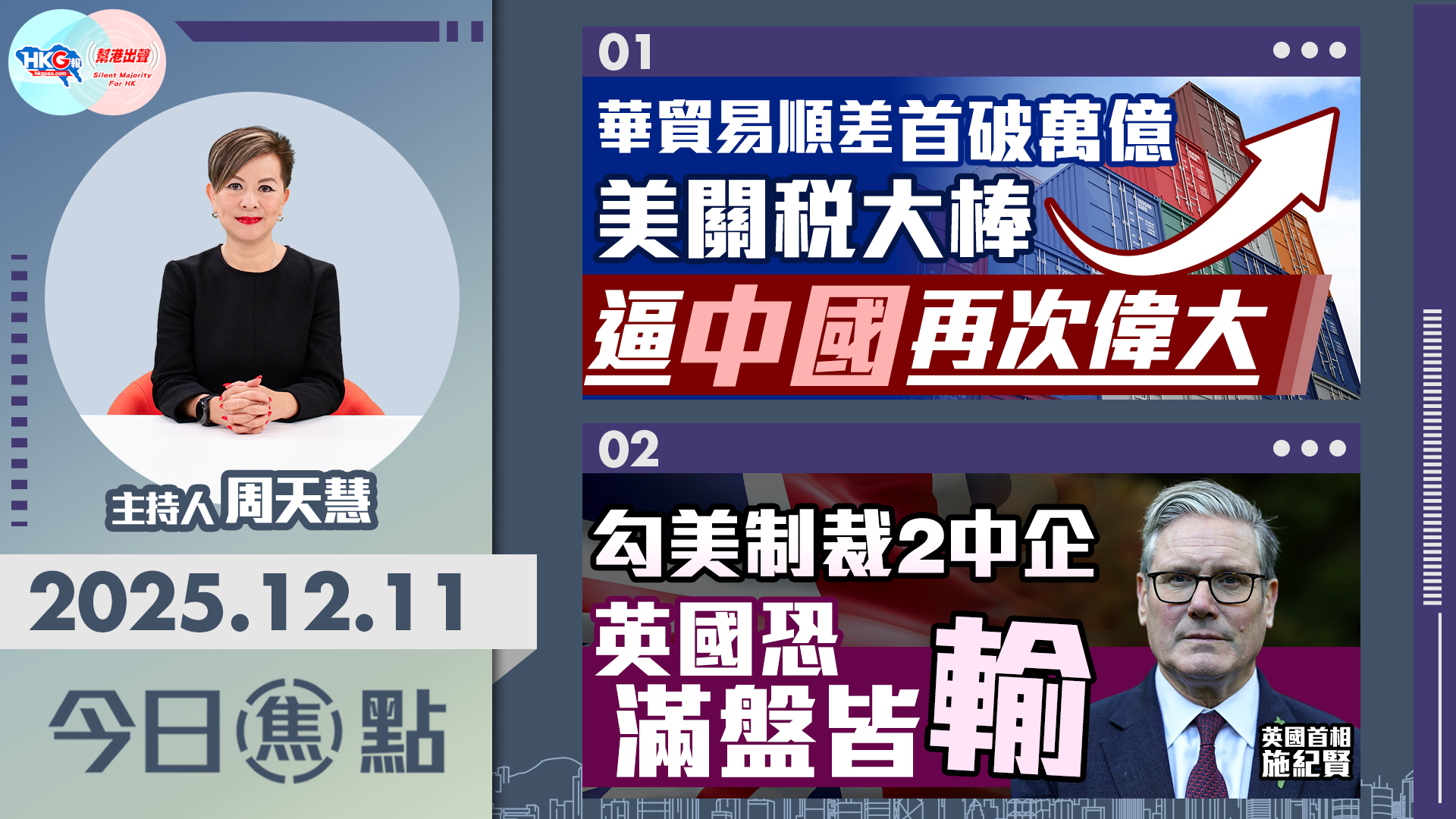 【HKG報與幫港出聲聯合製作‧今日焦點】華貿易順差首破萬億 美關稅大棒 逼中國再次偉 勾美制裁2中企 英國恐滿盤皆輸