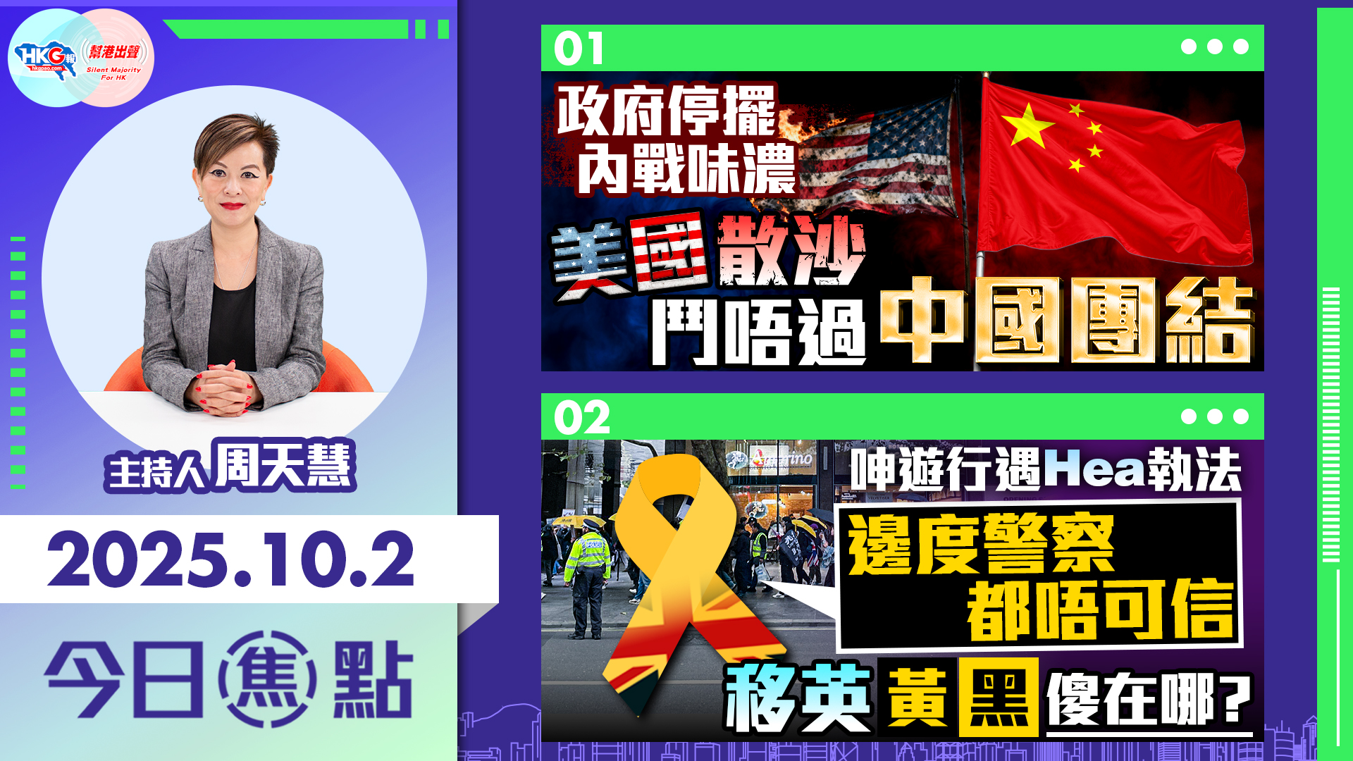 【HKG報與幫港出聲聯合製作‧今日焦點】政府停擺 內戰味濃 美國散沙鬥唔過中國團結 呻遊行遇Hea執法 「邊度警察都唔可信」 移英黃黑傻在哪?