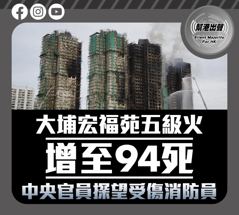 大埔宏福苑五級火 增至94死 中央官員探望受傷消防員